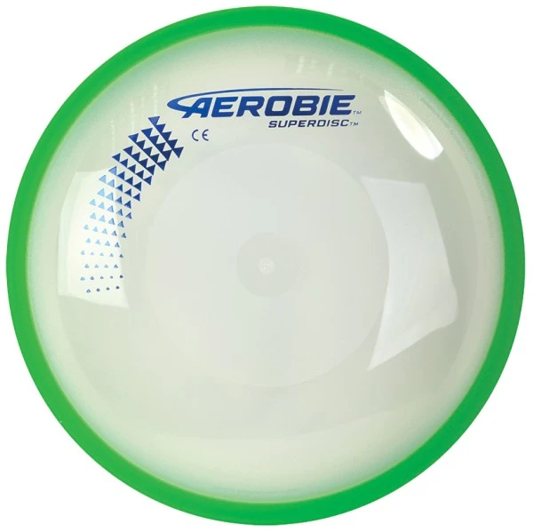 Diese Wurfscheibe von Aerobie – die Superdisc – verfügt über eine hohe Flugstabilität und schafft dadurch große Weiten. Dabei ist sie angenehm zu fangen, denn dann Material ist angenehm nachgiebig (ohne an Stabilität zu verlieren!). Die Scheibe darf mit ins Wasser und geht auch nicht unter, also optimal auch für den Strand. • Durchmesser ca. 25cm • Mittelbereich durchsichtig, Rand in leuchtender Farbe (kommt in blau, gelb, grün oder hellrot)