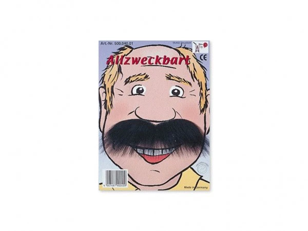 Dieser üppige schwarze Schnauzbart läßt sich notfalls noch in die passende Form zwirbeln oder schneiden. Selbstklebend.