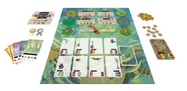 • Inhalt: 30 transparente Karten, 16 Abzeichen, 10 Inspirationsmarker, 18 übergroße Karten, 18 übergroße Hüllen, Kartonbox, Spielmatte