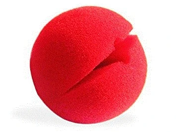 Eine ganz weiche ganz runde Clownsnase aus rotem Schaumstoff. Sie wird einfach durch einen Schlitz im Material auf die Nase geklemmt – fertig ist der Clown.