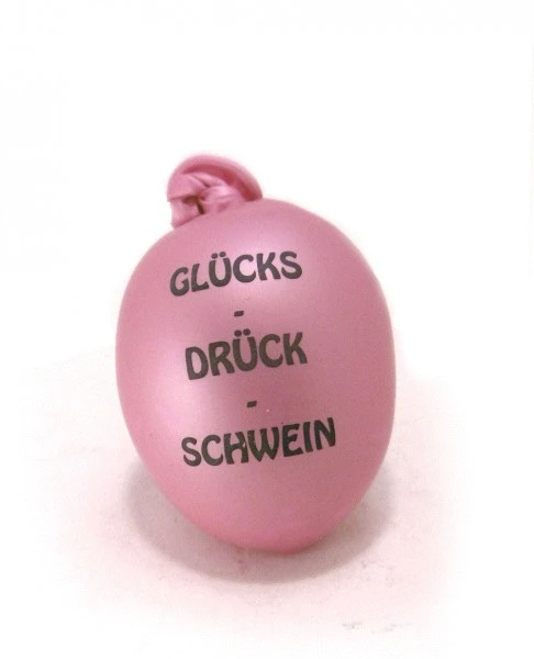 Glücksschwein! Dieser rosa Drückeberger mit Namen Glücks-Drück-Schwein ist fertig zum Verschenken. Für jemanden vor einer Prüfung, jemanden der auf eine wichtige Entscheidung wartet oder einfach nur ein bisschen Glück haben soll. Auf dem rosafarbenen Knetball ist der entsprechende Aufdruck.