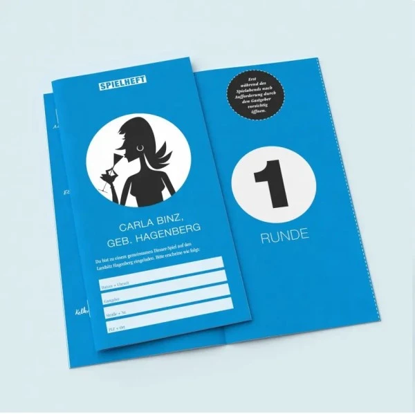 • Inhalt: 1 Spielanleitung, 8 Spielhefte, 1 Ereignisheft (beinhaltet Prolog, Ereignisse und Auflösung), 8 Namensschilder, 1 Support-Code