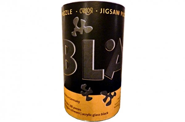 Ausführung: Plexiglaspuzzle, 88 Teile, 20cm Durchmesser, Vorder- und Rückseite schwarz, runde Verpackung mit 2 Leichtmetalldeckeln.