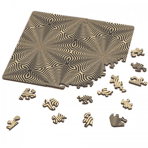 Das Motiv „Flower“ aus der Q-Double Puzzle Serie von Curiosi hat psychedelisch anmutende schwarz-weiß Linien im Puzzlebild. Nicht verwirren lassen!