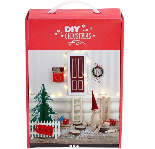 Diese Wichteltür – oder Elfentür gestaltest du ganz nach deinem eigenen Geschmack! Das Bastelset enthält ganz viele Bauteile aus Holz. Natürlich die Wichteltür selbst, aber dazu auch ganz viele süße Accessoires von Schlitten bis Nudelholz. Diese Teile kannst du nun alle bemalen und nach Herzenslust gestalten. Vielleicht wird es ja auch eine Feentür mit ganz viel Lila und Glitzer? Oder doch lieber die klassische Weihnachtswichteldeko in Rot, Braun und Grün? Sogar eine kleine Lichterkette und Dekoschnee sind dabei -viel Spaß! • Inhalt: Wichteltür-Bastelset mit über 25 Teilen, darunter Tür, Briefkasten, Leiter, Skier, Tannenbaum, Wichtelfigur, Zaun, Schlitten, Backutelsilien, Holzschuhe,… • die Holztür lässt sich öffnen • doppelseitiges Klebeband enthalten • Die kleine Lichterkette enthält noch keine Batterien (2x AA) • Deko- und Bastelartikel