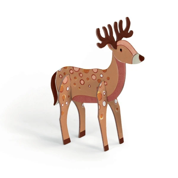 Stück für Stück werden beim Djeco Bastelset Malen und Stecken: Wald beliebte Tierfiguren zusammengesetzt und angemalt. Das Resultat ist eine tolle Grundlage für witzige Wald- und Tier-Spiele.