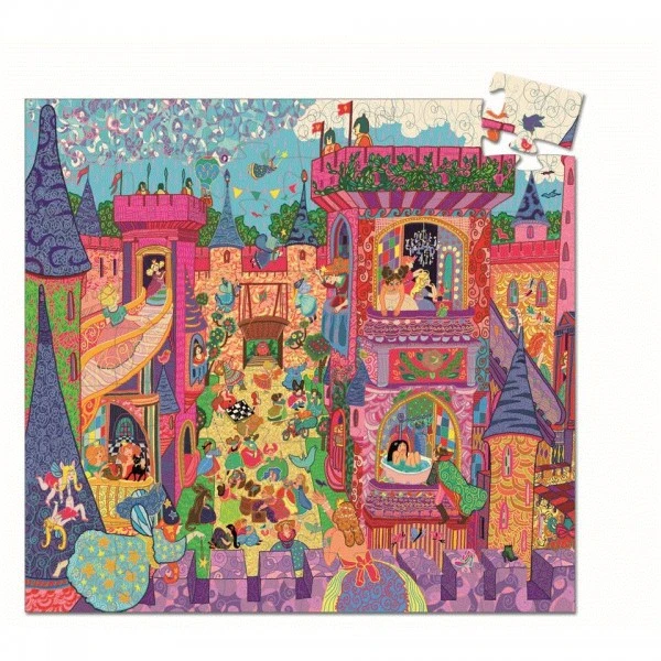 Dieses Puzzle von Djeco lässt Mädchenherzen höher schlagen – denn in dem Märchenschloss gibt es viel zu entdecken! 54 Teile liegen bereit und warten darauf zu einem tollen Bild zusammengefügt zu werden. Ein spannendes Puzzle für Kinder ab 5 Jahren. Sie können Teil für Teil zusammensetzen bis die Prinzessinnen, die Feen, die Schlosstürme, die lustigen Tiere und noch vieles mehr zu sehen sind. Mit jedem Puzzleteil, das dazu kommt, gibt es etwas Neues zu entdecken. Ist das Motiv komplett, können fantastische Geschichten mit den vielen Prinzessinnen, Rittern und Fabelwesen ausgedacht werden: Ist das Schloss riesig – hast Du schon alle Zimmer entdeckt? Und was all die Prinzessinnen wohl treiben? Hast Du schon die kleinen Feen entdeckt? Gerade für die kalte Jahreszeit ein prima Zeitvertreib für Kinder, durch den Konzentration und Ausdauer unter Beweis gestellt werden können. Auch als Geschenk eignet sich das Puzzle super, denn es ist ganz wundervoll verpackt – nämlich in Märchenschlossform. So macht die Geschenkverpackung später auch im Regal noch was her!