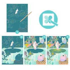 Kratz, kratz – bei den Djeco Kratzbildern: Der Teich geht es kreativ und nicht allzu kompliziert zu. Mit dem beiliegenden Stab werden 4 wundervolle Motive freigekratzt. Eine wundervolle Kunst-Erfahrung mit Ergebnissen, auf die die Kids stolz sein können!
