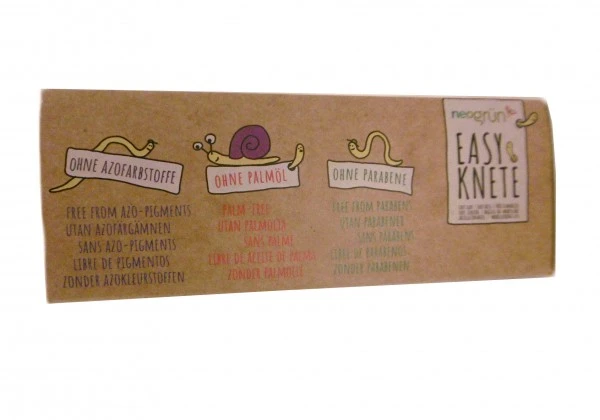 Die Zutaten der Knete sind Bio zertifiziert und vegan. Easy-Knete ist weich und leicht formbar, sie klebt nicht. Modellierte kleine Kunstwerke können luftgetrocknet werden. Das bedeutet auch, dass die Knete zum Aufbewahren immer wieder geschlossen werden muss, damit sie schön weich bleibt.