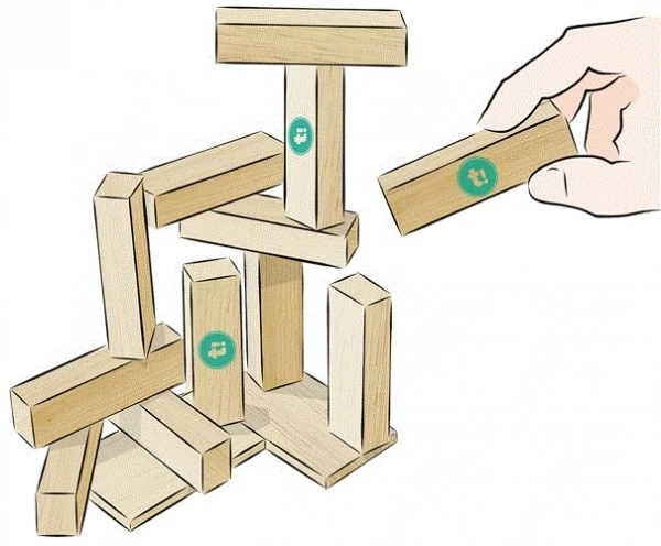 Baue einen einzigartigen Turm und verleite deine Mitspieler mit raffiniert gesetzten tumps und clever platzierten Holzblöcken zu gewagten Aktionen. Denn wer das Bauwerk einstürzen lässt, muss die heruntergefallenen Holzblöcke leider behalten. Der Würfel bestimmt, welche Bauaktion durchgeführt wird. Wer am wenigsten Holzblöcke hat, gewinnt.