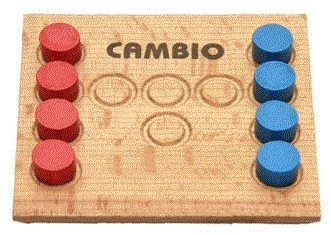 Ein pfiffiges Spiel mit spiel gut Auszeichnung. Spielsteine sind Holzzylinder in blau und rot