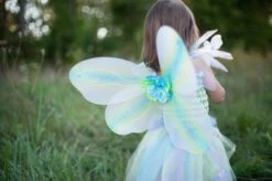 Süßes Elfen- oder Feenkleid mit Flügeln von Great Pretenders für Kinder im Alter von 5-6 vielleicht bis 7 Jahren. Das Oberteil des Kleides ist sehr dehnbar gearbeitet, daher passt es lange (wird nur immer kürzer…)