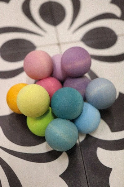 Die Pastellserie von Grimm´s Spiel- und Holzdesign besticht durch leichte fröhliche Farben. Dieser Greifling aus 12 Holzkugeln wird daher nicht nur Babys gutes Spielzeug, sondern auch Erwachsene werden ihn als Handschmeichler empfinden.