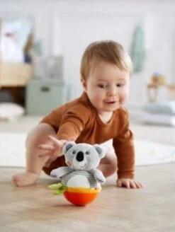 Dieser Koala ist eine Stehauffigur und animiert mit lustigen Bewegungen und Klang kleine Krabbelkinder zur Bewegung. Mit Begeisterung wir das Wackeltier immer wieder angestubst.