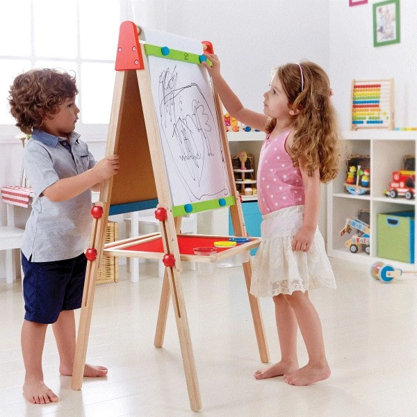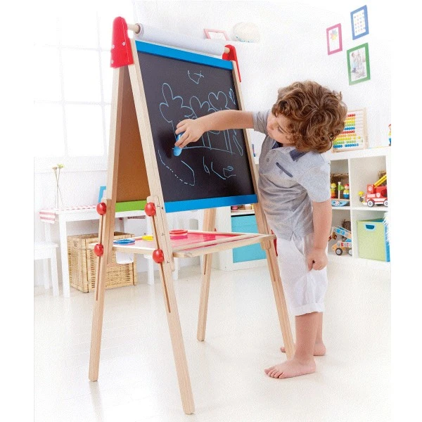 – Holz-Spiel-Tafel All in 1 Easel von Hape, vereint Kreidetafel, Magnettafel und Mal-Staffelei.