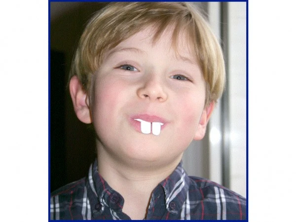 Falsche Zähne für Osterhasen aus Kunststoff. Werden einfach unter die Oberlippe geschoben… Sorgt für Freude beim Eiersuchen.
