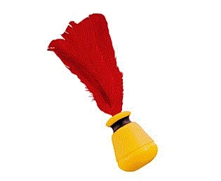 Indiacas werden mit der flachen Hand geschlagen und sich so gegenseitig zugespielt.Indiacas haben viele Vorteile gegenüber von Federbällen: Sie sind viel windunempfindlicher, trotzdem aber gut und leicht zu spielen und sie sind schnell beispielsweise in der Schultasche verstaut, da man auch ohne jegliche Arten von Schlägern mit Indiacas spielen kann.Hier ein schöner weicher Ball unten, oben roter austauschbarer Federschwanz. Er bietet ein utes Flugverhalten für ein Freizeit-Indiaca.