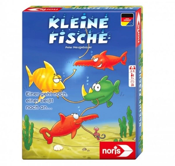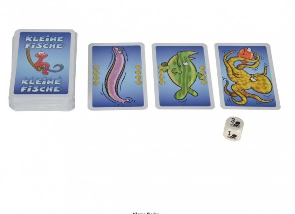Aale, Kugelfische oder auch ein Oktopus – all die lustigen Unterwasser-Kreaturen lassen sich beim Kartenspiel Kleine Fische Angeln. Aber natürlich nur mit etwas Glück und den korrekten Würfel-Motiven. Eine kunterbunter Spielspaß für die ganze Familie! • Kartenspiel Kleine Fische