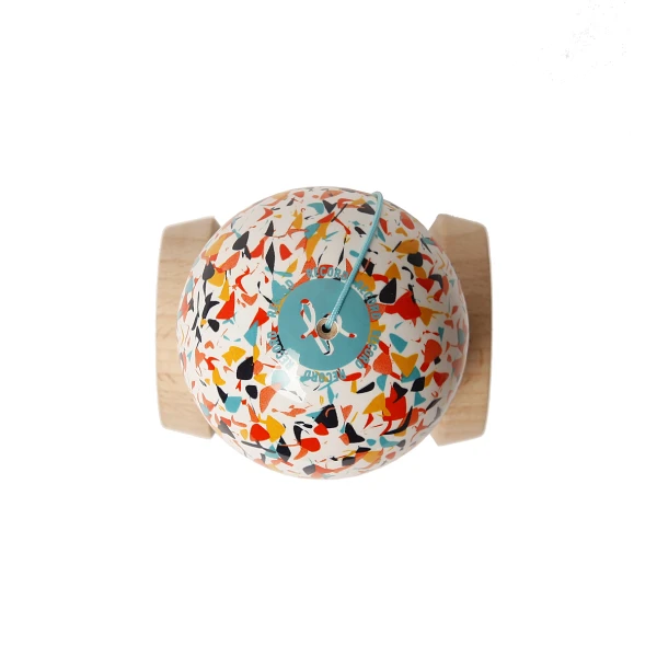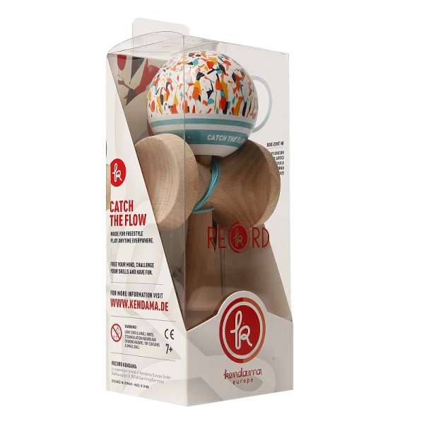 Kendama Record+ Splash Match Clear mit glänzender Kugel von Kendama Europe. Splash heißt das coole Motiv der Kugel, Match Clear ist der Name der glänzenden Oberfläche, die aber trotzdem gute Haftung hat.Diese Serie Record plus macht das Kendama spielen wieder ein wenig einfacher. Sowohl die Kugel als auch die Teller sind ein wenig größer als bei anderen Serien und machen das Fangen leichter. Auch die Bohrung in der Kugel ist etwas breiter. Es bietet jede Menge Spaß für Einsteiger UND Fortgeschrittene. Kendama ist ein Geschicklichkeitsspiel und Sport mit vielen vielen Trickmöglichkeiten. Anleitung und Ersatzschnur liegen bei.