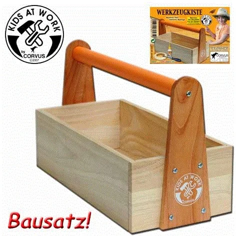 Mit der Kids At Work Bausatz Werkzeugkiste bekommt das Lieblingswerkzeug der Kids eine tolle selbstgemachte Transportbox. Die vorgefrästen Einzelteile lassen sich super einfach zusammenbasteln, sodass die Jungs und Mädchen ganz unkompliziert zu ihrem eigenen Werk kommen. Und wenn noch gar nicht so viel Werkzeug vorhanden ist? In unserem Online-Shop finden sich vom Hammer bis zur Bohrmaschine viele tolle Kinder-Werkzeuge, die sich super in der Werkzeugkiste verstauen lassen. Die Produkte der Reihe „Kids At Work“ von Corvus erfreuen sich seit jeher reichlicher Beliebtheit. Sei es unter den Kindern, welche durch die Artikel spielend leicht den Umgang mit Werkzeug erproben können. Oder unter den Eltern, die sich darüber freuen, auch ihren Kindern solide verarbeitetes Werkzeug bieten zu können. Man darf sich durch den Namen nämlich nicht täuschen lassen: Die Produkte sind als vollwertige Werkzeuge konzipiert, sodass die Kinder Mana und Papa bei vielfältigen Aufgaben daheim hilfreich zur Seite stehen können. • Kids At Work Bausatz Werkzeugkiste• Material: Buche• Farbiger Griff• Achtung: Nötiges Werkzeug zum Zusammenbauen liegt nicht bei Achtung: Echtes Werkzeug, kein Spielzeug. Nicht geeignet für Kinder unter 14 Jahren!