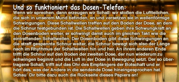 Zwei Dosen und ein straff gespanntes Seil und schon funktioniert die Kommunikation.