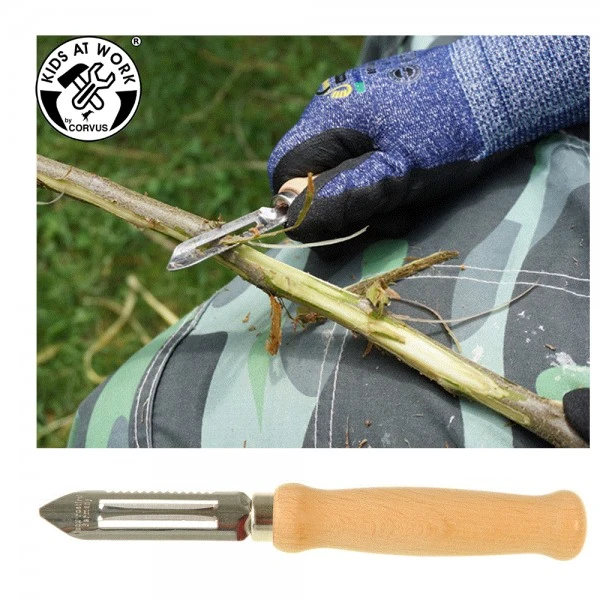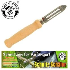 Der Schnitz-Schäler gibt Kindern die Möglichkeit, die verschiedenen Schichten der Naturmaterialien zu erforschen. Der Schäler ist vor allem für Schnitz-Anfänger gedacht, um so die Grundlagen sicheren Schnitzens zu erlangen. Dennoch sollte dieser nur unter Aufsicht eines Erwachsenen benutzt werden.