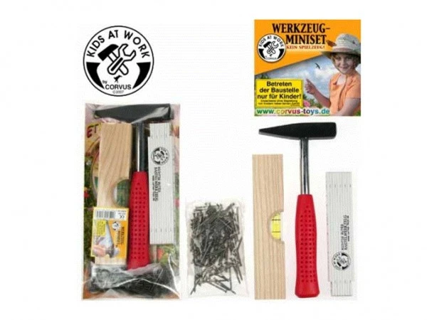 Dieses Werkzeugset beinhaltet eine Auswahl von verschiedenen Werkzeugen, welche in keinem Handwerkerinnen- und Handwerkerhaushalt fehlen dürfen. Mit dabei ist der kleine Hammer von Corvus, der Zollstock, eine Wasserwaage und eine Packung mit Nägeln. Mit diesem Set können bereits die ersten Arbeiten geplant und durchgeführt werden, wodurch es zu einem beliebten Starterset für alle bau- und bastelbegeisterten Kids wird.