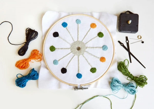 Mit dem Kikkerland Set Cross Stitch Clock wird eine super individuelle Uhr durch Stickerei erschaffen. Gleich 12 verschieden farbige Garne sorgen für kunterbunte Bastelmöglichkeiten. 4 unterschiedliche Muster und Stiche sorgen dafür, dass die Wanduhr ganz den persönlichen Vorstellungen entspricht. Für Kinder ein toller Einstieg in das Prinzip der Stickerei. Und auch für Erwachsene bietet das Set eine tolle Gelegenheit, die Stick-Künste in Form einer praktischen Uhr zu verewigen.