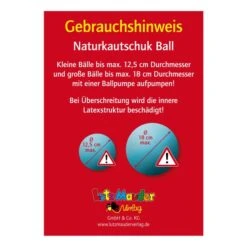 Diesen Ball bitte nur bis zu seinem Durchmesser von 12,5 cm aufpumpen. Bei Überschreitung droht die Beschädigung des Materials.