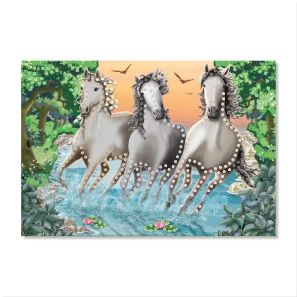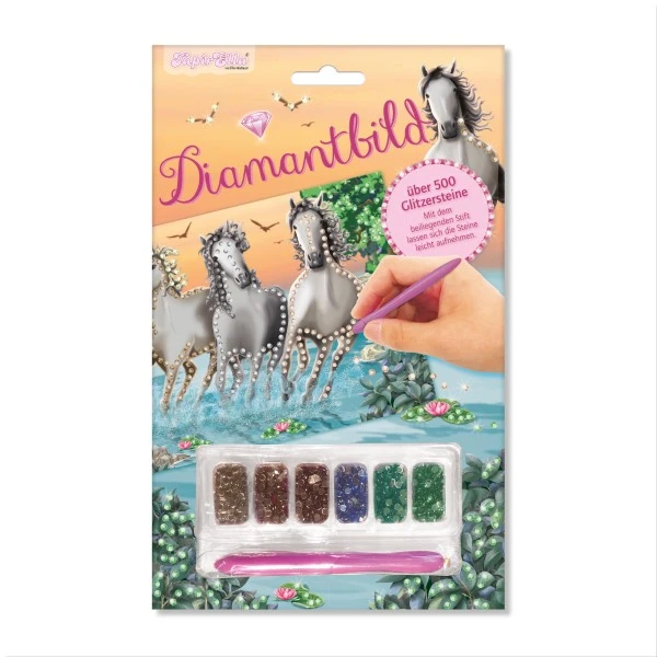 Galoppierende Pferde wollen von dir verziert werden. Die Lutz Mauder TapirElla Diamantbilder sind ein toller Kreativ-Spaß mit extra Glitzer-Faktor! Stein für Stein werden die kleinen Diamant-Imitate mit dem Haftstift auf die Motivkarte gebracht. Das Ergebnis ist ein tolles Glitzermotiv, das die kleinen Künstlerinnen und Künstler staunen lässt.