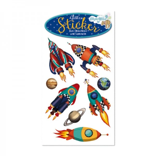 Die TapirElla Glitter-Sticker „Rakete“ von Lutz Mauder sind coole Glitzeraufkleber, passend zum Thema Weltraum, Galaxie und Planeten!