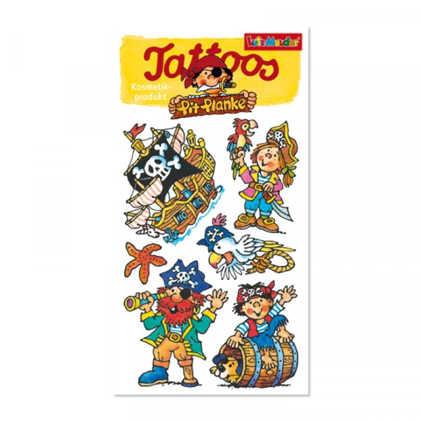 Die Lutz Mauder Tattoo Piraten 6 – tolle Kinder-Tattoos für mächtig viel Spaß. Leicht aufzutragen und natürlich auch leicht wieder zu entfernen. Hochwertige und unbedenkliche Materialien, die der EU Kosmetik-Richtlinie entsprechen!