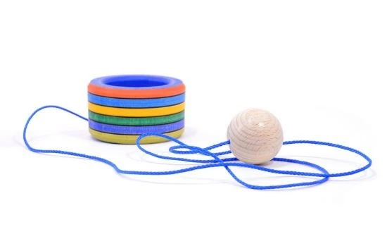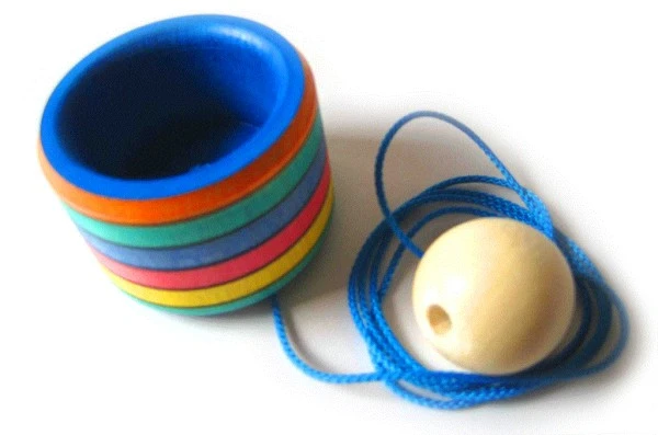 Ein einfaches Geschicklichkeitsspiel mit so hohem Spiel- und Spaßfaktor: Der Ball an der Schnur muß in den Becher! Wer hat die beste Technik?