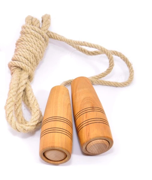 Dieses Springseil aus der österreichischen Kreiselmanufaktur Mader hat handgedrechselte Griffe aus edlem geöltem Kirschbaumholz. Sie sind so gearbeitet, dass sich das Seil im Griff drehen kann – einer langen Trainingseinheit steht somit nichts im Wege! Auch das Seil besteht aus Naturmaterial. Es ist ein Hanfseil mit verstärkter Mitte. Das Mader Sportseil ist in den Maßen für Erwachsene ausgelegt. • Seillänge 2,80m • passend für Körpergröße bis ca. 1,80m