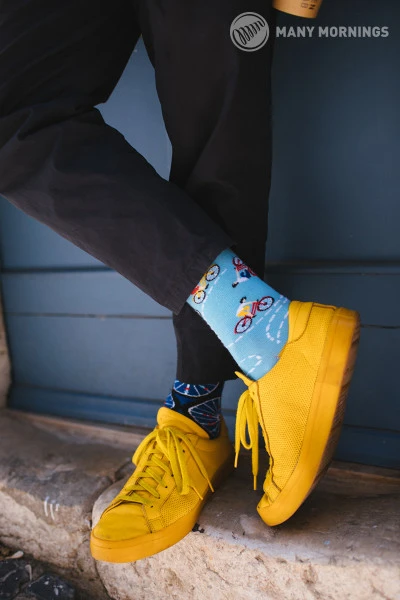 Die Many Mornings Socken The Bicycles Gr. 35-38 sind ein echter Blickfänger und bezaubern alle Fans witziger Motivsocken. Das Besondere dabei: Das Paar besteht aus zwei verschiedenen Socken mit unterschiedlichen Motiven. So bringt schon das morgendliche Socken-Anziehen wunderbar viel Spaß und auch den Tag über kommt immer wieder Freude hoch.