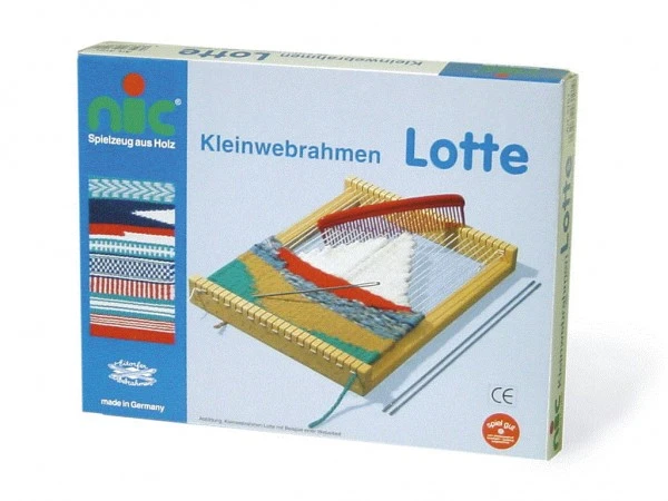 Der Kleinwebrahmen Lotte ist ein idealer Einstieg in die Welt des Webens. Mit Hilfe der Webnadel kann das Kind gut verstehen, wo der Faden lang muß und schult dabei gleichzeitig die Geschicklichkeit. Zwei Metallschienen, die bei den äußersten Kettfäden eingelegt werden, helfen die Breite des Webstücks gleich zu halten, eine tolle Unterstützung.