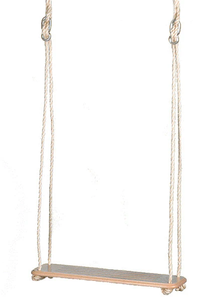 Das Schaukelbrett ist aus massivem Buchenholz, kantengefräst und gewachst. Die Schaukelseile sind aus Sisalseil und mit Stellachten justierbar.
