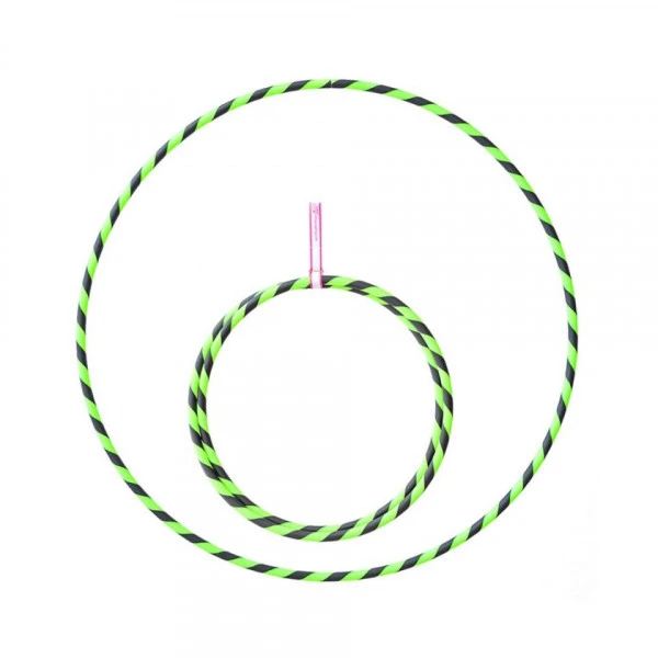 Ein grüner Hula Reifen mit schwarzer Streifendeko mit „Zerlegefunktion“.