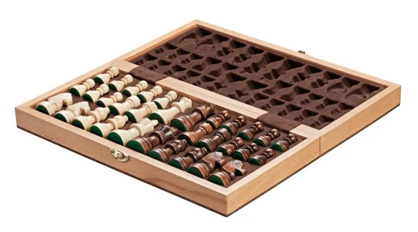 Hier eine helle schöne Schach-Kassette mit Figuren.