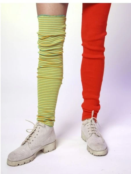 Ein Paar besteht aus einer roten und einer bunt geringelten Stulpe. Eine Pippi Langstrumpf ohne diese Socken, eigentlich unvorstellbar. Universalgröße für Erwachsene.