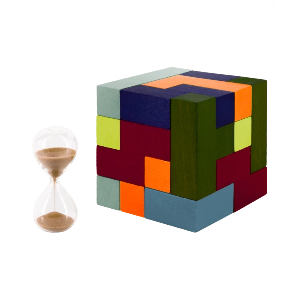• Inhalt: 16 Bausteine, 70 Aufgabenkarten, 1 Sanduhr, 1 Würfelbauanleitung