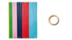 •50 farbige Birken-Holzstäbe in 6 verschiedenen Farben, 1 Holzring aus Buche