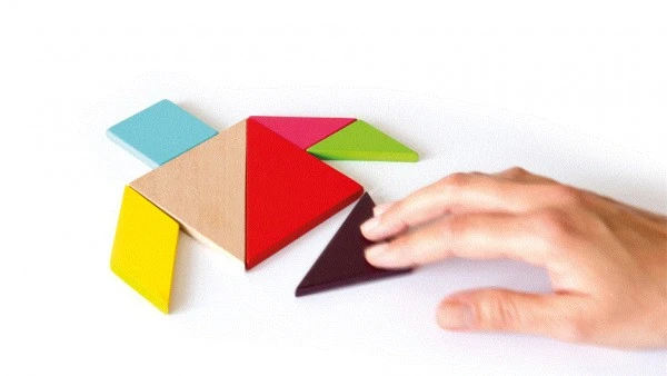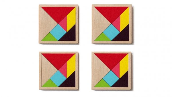 • Enthält 4 Tangrams mit je 7 Legesteinen aus Holz