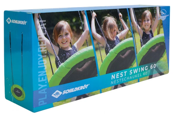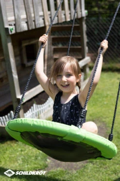 Nestschaukeln sind einfach toll, sie haben mehr Sitzfläche als die klassischen Schaukelbretter. So kann sich das Kind super hineinsetzen oder auch z.B. bäuchlings hineinlegen – ein großer Spaß. Diese Variante von Schildkröt ist mit 60cm Durchmesser ein bisschen kleiner. Sie ist für drinnen und draußen geeignet.