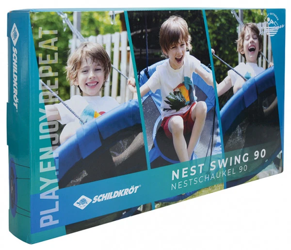 Nestschaukeln sind einfach toll, sie haben mehr Sitzfläche als die klassischen Schaukelbretter. So kann sich das Kind super hineinsetzen oder auch z.B. bäuchlings hineinlegen – ein großer Spaß und auch sehr entspannend. Diese Variante von Schildkröt hat 90cm Durchmesser. Sie ist für drinnen und draußen geeignet.