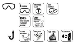 Ab ins Tauchvergnügen: Das Schnorchelset Fiji von Schildkröt für Jugendliche und Erwachsenehat eine tolle hochwertige Ausstattung, bestes Silikon-Material, ein trendiges Design und ein sensationelles Preis-Leistungs-Verhältnis! Der flexibele Schnorchel mit dem beweglichen Easy Clip Halter passt sich super an praktisch jede Kopfform und unterschiedliche Kopfgrößen an! Am oberen Ende ist er mit Spritzwasserschutz ausgestattet. Die Brille ist aus einem durchgängigen Sicherheits-Glas für beste Sicht. Die Weitenverstellung des Riemens erfolgt durch zwei seitliche Schallen.