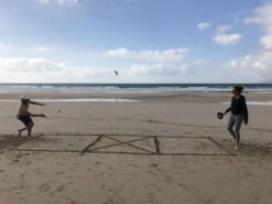 • Inhalt: 2 Schläger, Schaumstoffbälle, Kreide, Spielanleitung, Tasche mit Kordelzug