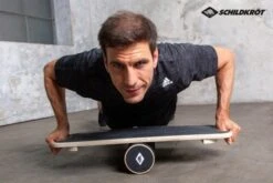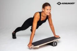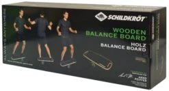 Das Schildkröt Wooden Balance Board trainiert Koordination, Gleichgewicht und Konzentrationsfähigkeit. Jongleurinnen und Artisten kennen dieses Prinzip vom Rola Bola: Ein Brett liegt auf einer Rolle und du versuchst, darauf zu stehen und dich auszubalancieren. WEnn das sicher klappt, kann dann gleichzeitig auch noch jongliert werden! Schildkröt hat dieses Balance Board allerdings auch als Fitnessgerät produziert. Die Brettform wurde in Anlehnung an das klassische Surf-, Snow- und Skateboard konzipiert. Während des Gleichgewichtstrainings bietet die rutschhemmende Oberfläche einen sicheren Halt. Ein dauerhaftes Training stärkt die Rumpfmuskulatur und verbessert die Körperhaltung. Auch Liegestütze, Dips und andere Übungen bekommen mit dem Balance Board einen neuen Kick. • Maße Board: 73,5 x 28cm / Rolle: Ø 11cm, 35cm • Inkl. Anleitung • Maximale Tragkraft: 120kg. • aus Furnierholz • Rolle ist mit Filz ummantelt Holt euch zu Anfang Hilfestellung, man kann im Stehen ordentlich ausrutschen. Übt auf einem nicht rutschigen Untergrund. Auf Teppich z.B. ist der Einstieg leichter 🙂