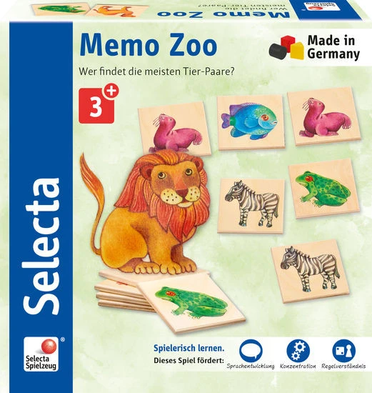 All die tollen Lieblingstiere der Kids sind beim Selecta Memo Zoo 36 Teile versammelt – und das auch noch in einer einmalig liebevollen Gestaltung! Zebra, Löwe, Fisch – bei diesem Memory kann viel über das Aussehen dieser spannenden Wesen gelernt werden und zugleich ist das Spielvergnügen einfach riesig!