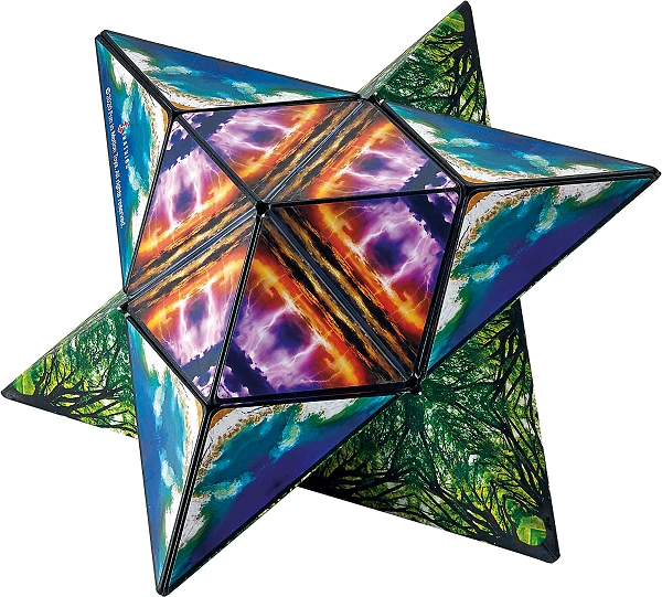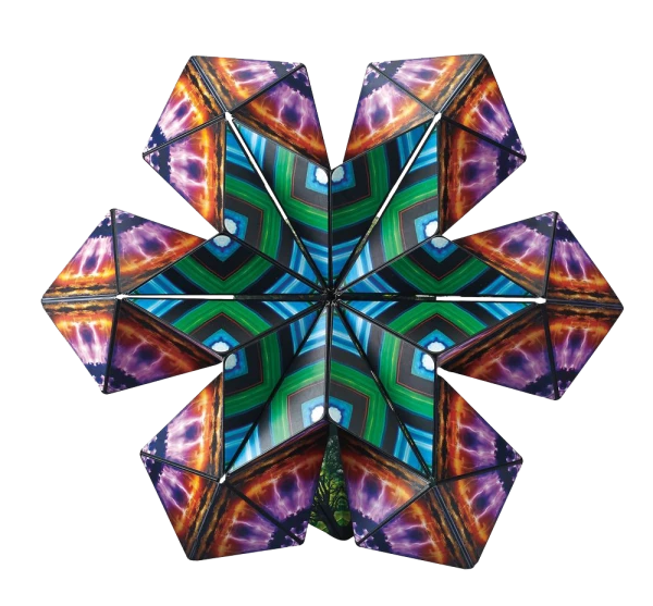 Er ist an 2 Ecken zu öffnen, aus Pyramiden zusammengesetzt, mit Gelenken verbunden und mit 36 versteckten Magneten stabilisiert.
